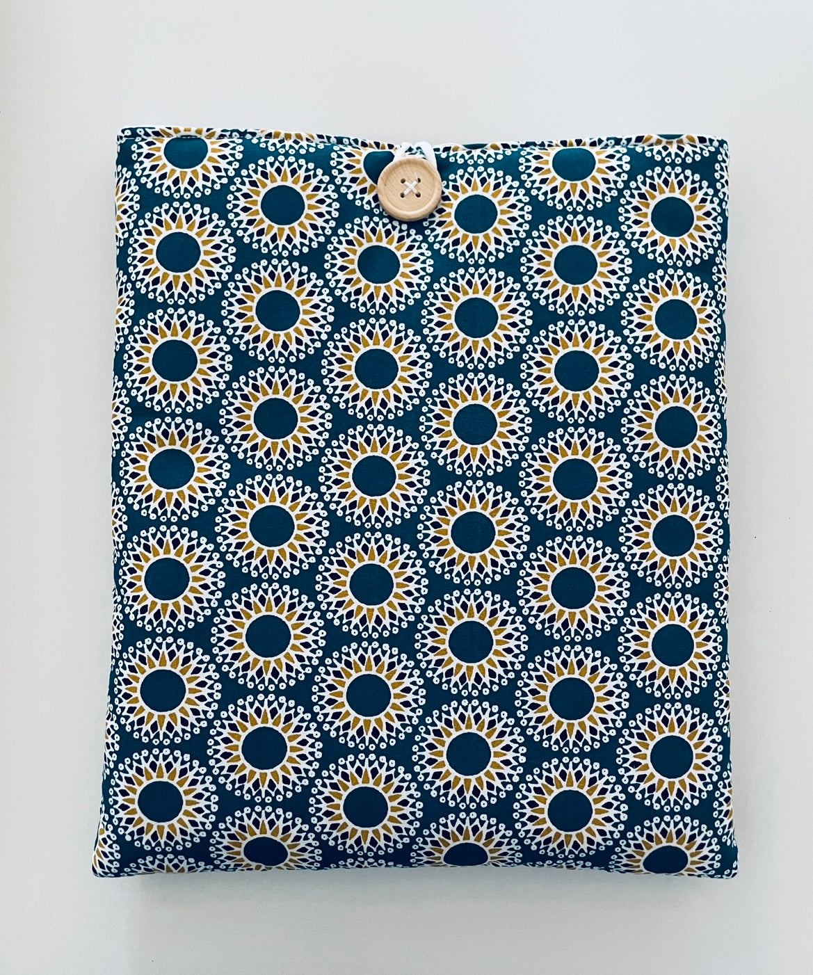 Pratique et anti choc grâce à son rembourrage qui donne une épaisseur moelleuse à la pochette. Fermeture par un bouton en bois naturel. Pochette entièrement doublée.