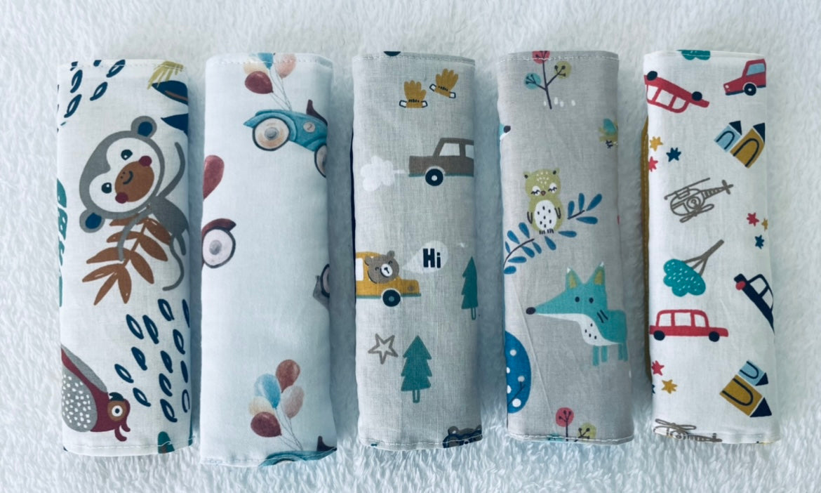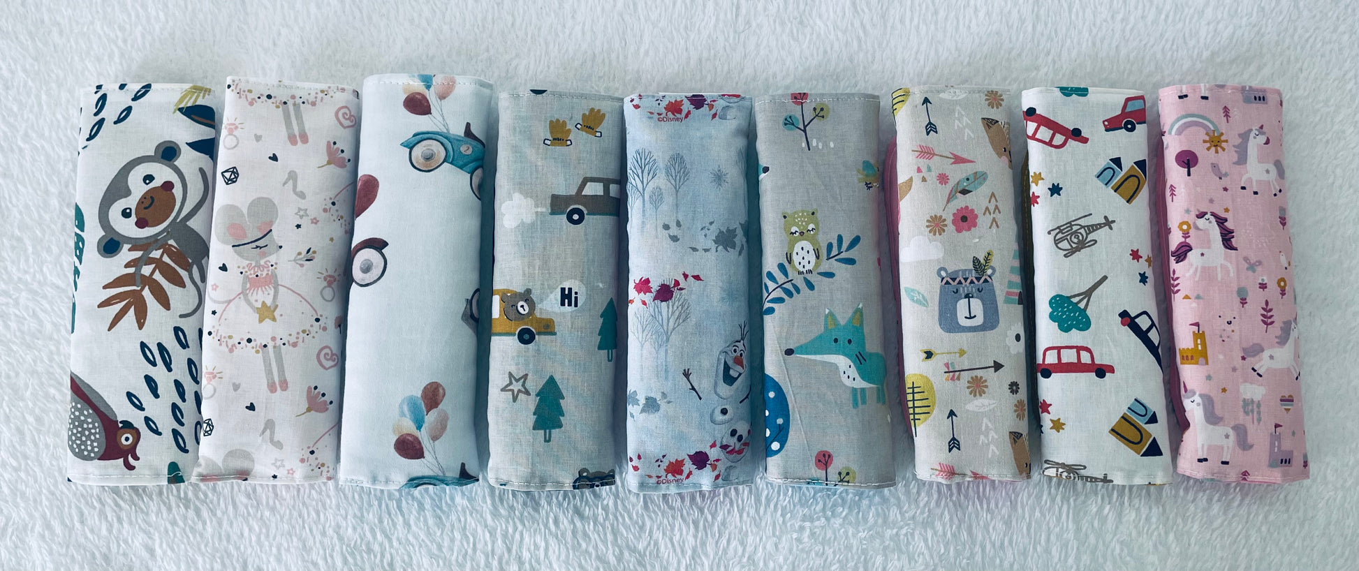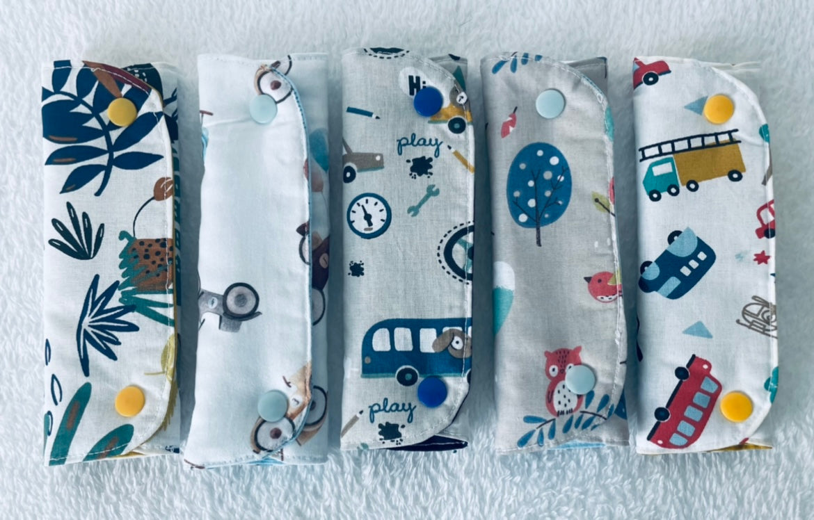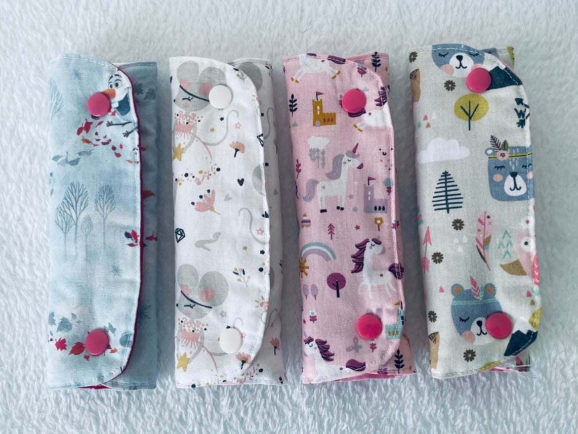 Entièrement réalisé à la main par mes soins en tissus de coton certifié oekotex. Intérieur molletonné pour un effet rembourré et pour plus de confort. Fermeture par deux boutons pressions.