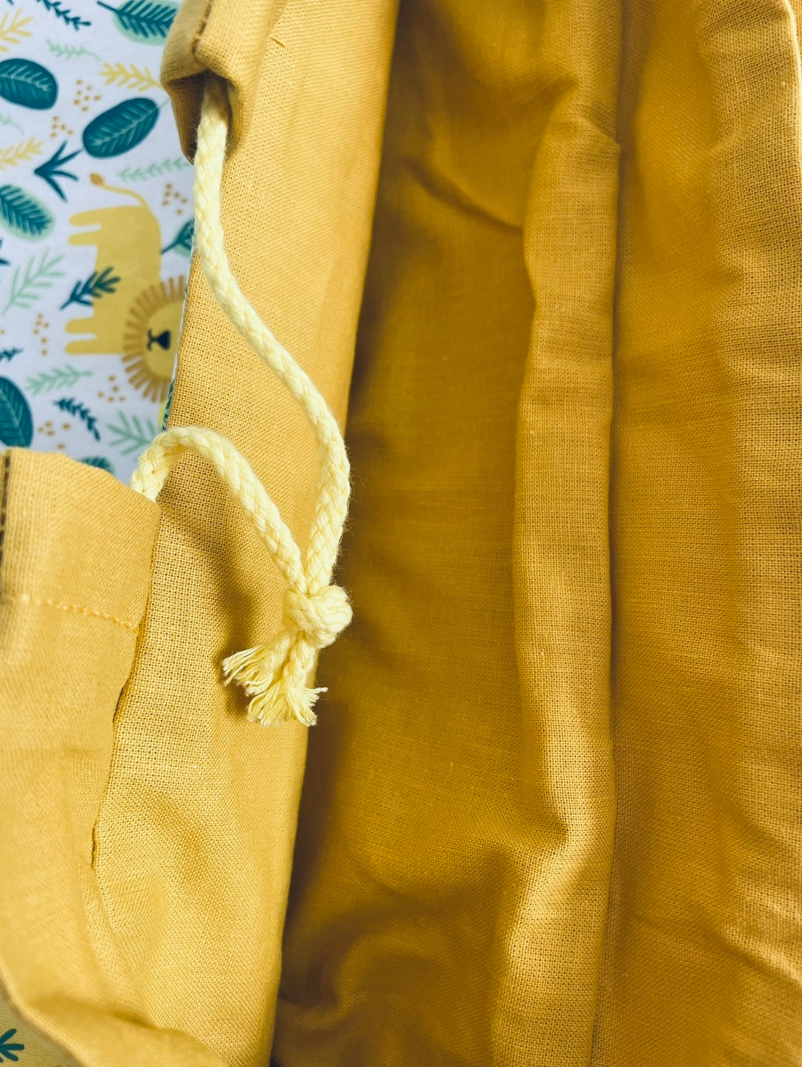 Ces sacs à dos sont entièrement doublés et se ferment par un petit cordon à l'intérieur puis par un bouton pression.
